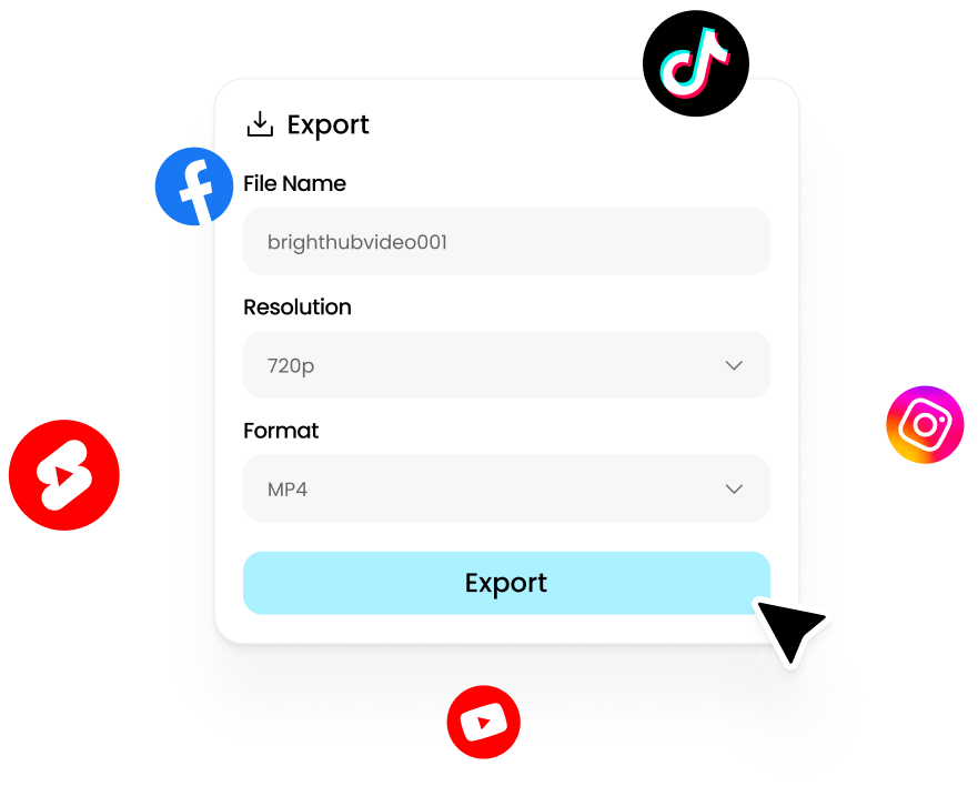 Export in any format, optimized for TikTok, Instagram, YouTube — or download a 4K file for commercial use.